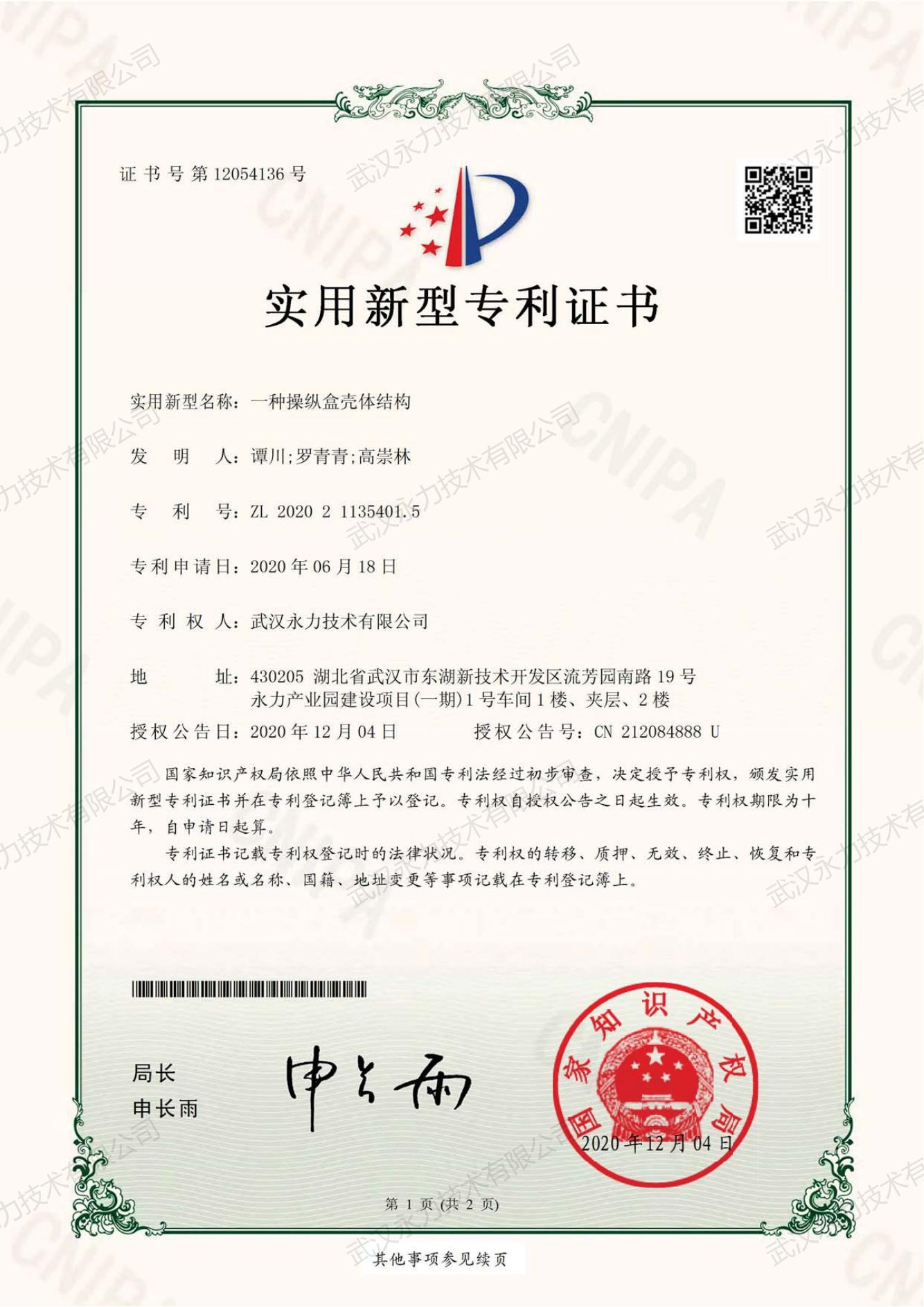 實用新型專利證書